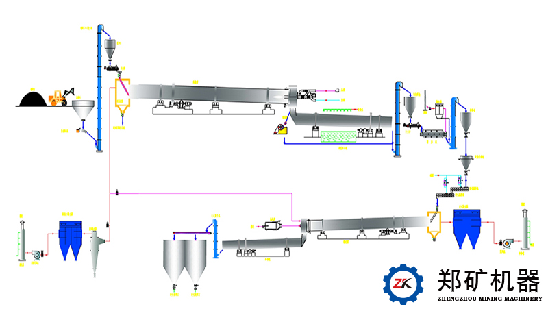 酸化焙烧:焙料经冷却段降温后由窑头出料,再经自然冷却和球磨机研磨细到0.074mm粒级在90%以上后,输送到酸化焙烧窑尾矿仓,再经给料机和螺旋输送机加入混酸机中与浓硫酸(93%以上)按一定比例(浓硫酸按焙料中锂当量过剩35%计,每吨焙料需浓硫酸约0.21t)混合均匀后,加入酸化焙烧室中,在250~300℃左右的温度下进行密闭酸化焙烧30~60min,焙料中β型锂辉石同硫酸反应,酸中氢离子置换β型锂辉石中的锂离子,使其中的Li2O与SO42-结合为可溶于水的Li2SO4,得到酸化熟料。