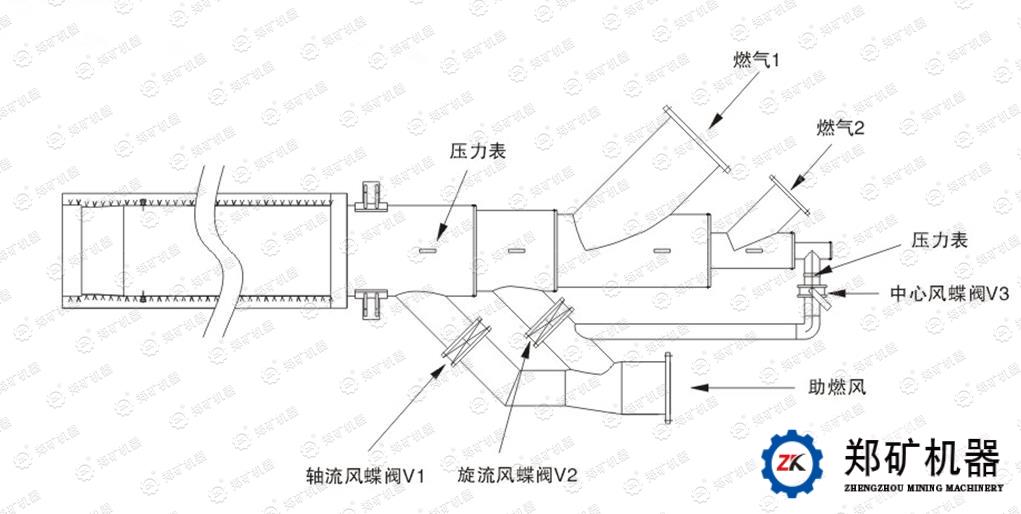 煤气燃烧器是以热煤气为热源的加热设施,用来实现热煤气燃烧过程的专用设备。在金属镁生产线中用来给金属镁回转窑系统提供热源。主要工作原理是按一定比例和一定混合条件将热煤气和助燃空气引入煤气燃烧器内进行燃烧,并满足加热过程中对火焰的方向、外形、刚性和铺展性的要求。